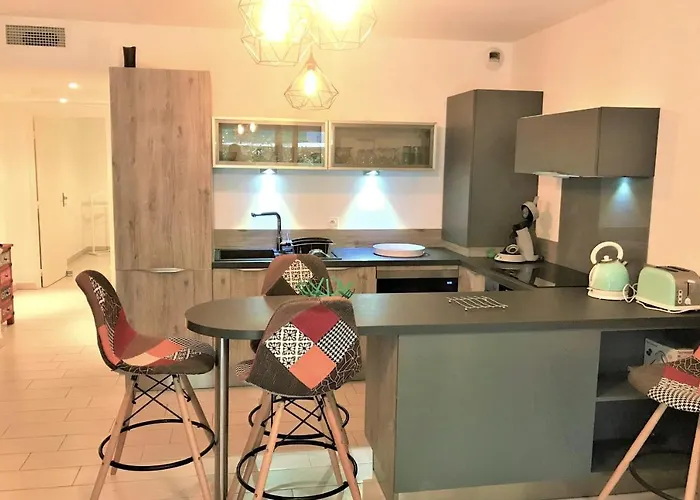 1-slaapkamer Centre Juan Les Pins Appartement appartement ligt in Juan-les-Pins, op 10 minuten autorijden van strand Les Ondes, en geeft gasten een buitenzwembad. Het strand van Juan-les-Pins is op enkele minuten rijden van het appartement van 40 m^2 gelegen.